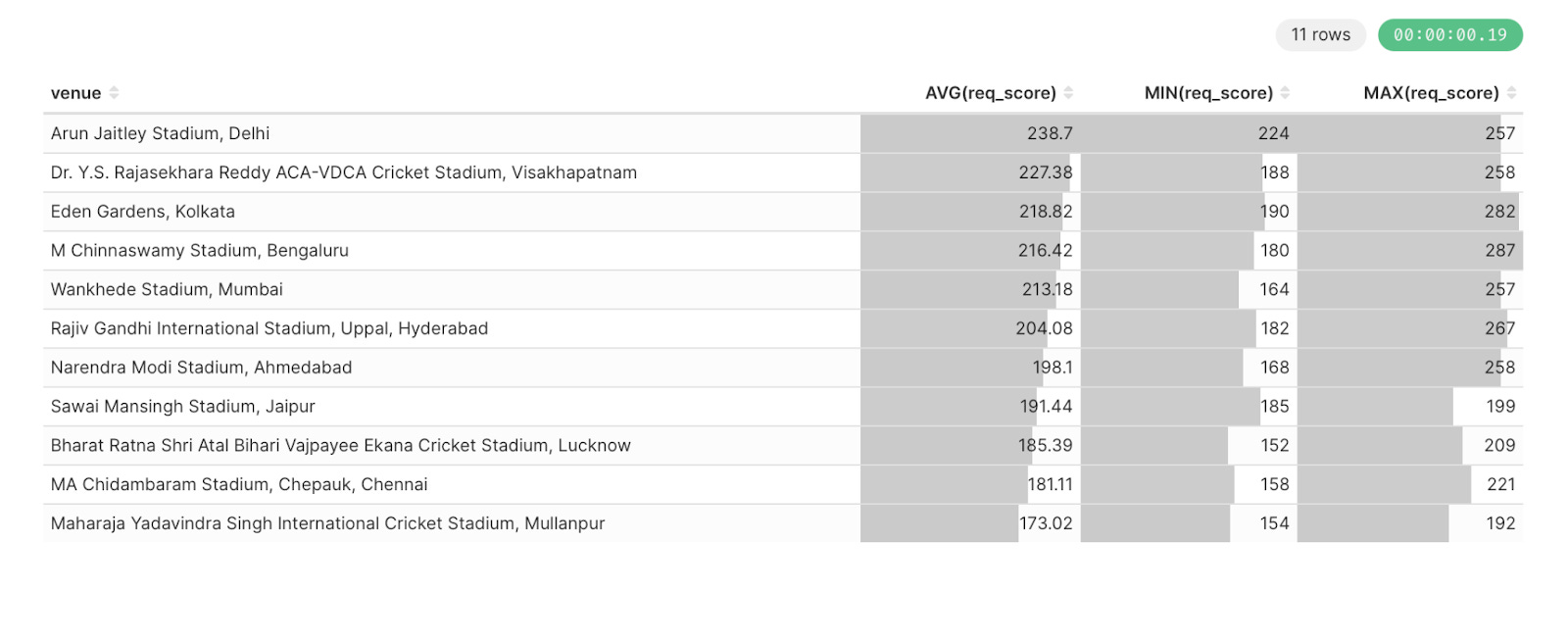 How is ‘Required Runs’ calculated? For the second innings it’s straightforward - it is one run more than what was scored in the 1st innings. For the first innings, it is complicated. I will write a separate post to explain the logic in detail. For now, please live with the definition - it is the runs that should have been scored in the first innings to have an even contest. I am sharing the average, minimum, and maximum of the first innings required runs according to my calculation (the data considered is till 2nd May) -